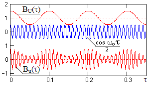 На рис. 15.1.7 приведена типичная форма автокорреляционных функций однотонального модулированного сигнала при М=1 и Um=1.