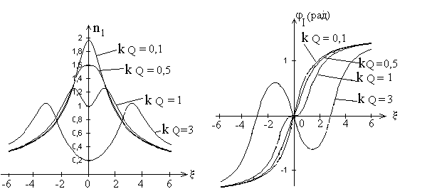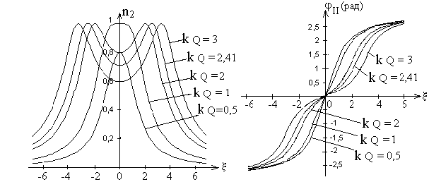 На рис.80 приведены АЧХ и ФЧХ второго контура в функции обобщенной расстройки при пяти различных значениях произведения kQ. (kQ характеризует степень связи контуров и называется параметром или фактором связи).