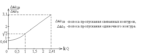 Полосой пропускания системы связанных контуров называют полосу частот, в пределах которой ток во втором контуре не падает ниже  от наибольшего его значения при заданных параметрах контуров и коэффициенте связи. Так как резонансные кривые тока второго контура зависят от фактора связи , то следует рассмотреть три случая: < 1, = 1 и > 1.