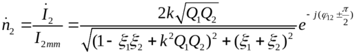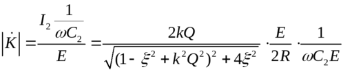 Часто на практике необходимо знать, как зависит напряжение на реактивных элементах второго контура при изменении частоты источника сигнала. Для этой цели вводится комплексный коэффициент передачи по напряжению