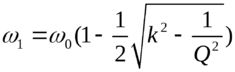 При этом, частоты связи тем больше отличаются от резонансной частоты, чем больше коэффициент связи отличается от критического