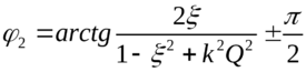 Очевидно, что кривые зависимости фазы комплексного коэффициента передачи от частоты совпадают с кривыми ФЧХ второго контура, если их опустить на  при съёме напряжения с ёмкости (напряжение на ёмкости отстает от тока на ) и поднять на при съёме напряжения с индуктивности (напряжение на индуктивности опережает ток на ).