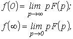 В заключение раздела отметим, что для нахождения начального и конечного значений оригинала можно использовать предельные соотношения