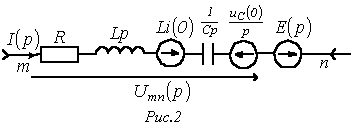 Уравнение (2) есть математическая запись закона Ома для участка цепи с источником ЭДС в операторной форме. В соответствии с ним для ветви на рис. 1 можно нарисовать операторную схему замещения, представленную на рис. 2.