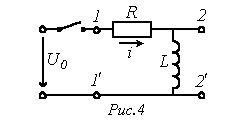 В качестве примера использования интеграла Дюамеля определим ток в цепи рис. 3, рассчитанный в предыдущей лекции с использованием формулы включения.