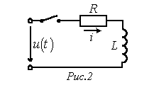В качестве примера использования формулы включения рассчитаем ток в цепи на рис. 2, если в момент времени t=0 она подсоединяется к источнику с напряжением ; ; .