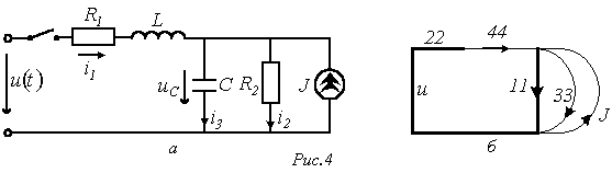 В качестве примера составления уравнений состояния рассмотрим цепь на рис. 4,а, в которой требуется определить токи и .