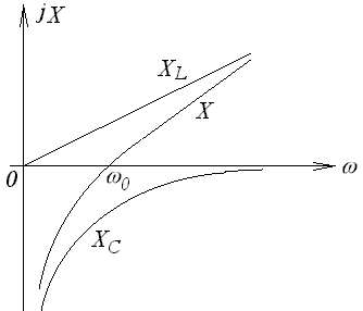 Активную составляющую входного сопротивления R можно приближенно считать не зависящей от частоты генератора. Реактивная составляющая является функцией частоты и в зависимости от величины L, C, и изменяется по величине и знаку (рис.50).