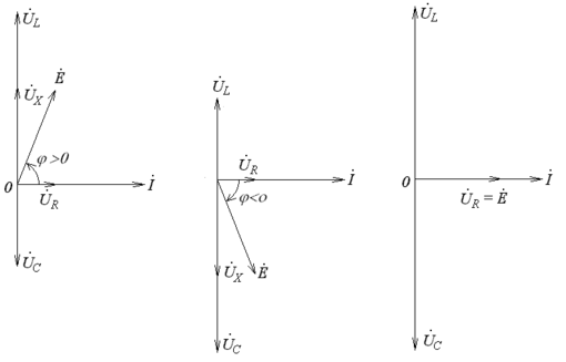 В зависимости от соотношения величин индуктивного и емкостного сопротивлений возможны три случая: