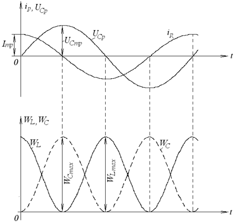 Таким образом, при резонансе происходит непрерывное перераспределение энергии магнитного и электрического полей с частотой , причем суммарная энергия остается неизменной: