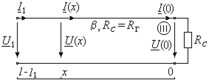Совместное решение трех последних уравнений дает выражения искомых распределений действующих значений напряжения и тока вдоль несогласованного участка отрезка линии: