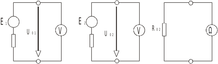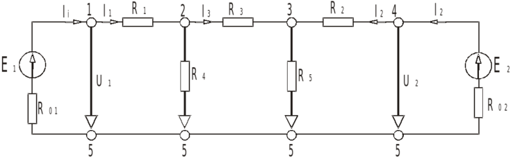 1. Определить значение сопротивления резисторов R1… R5 и напряжений холостого хода U01 и U02 (ЭДС E1=U01и E2=U02) источников.