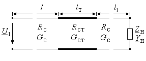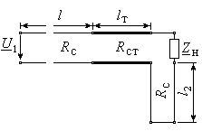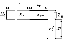 Высокочастотный генератор мощностью Рг с внутренним сопротивлением Rг, работающий на частоте fг, связан с приемником энергии отрезком радиочастотного кабеля длиной l. Приемник энергии представлен сосредоточенным пассивным двухполюсником с комплексным сопротивлением