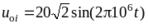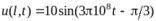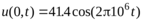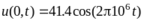 Напряжение в начале разомкнутого отрезка однородной линии без потерь длиной l = 1.25 м с характеристическим сопротивлением Rc = 50 Ом аппроксимируется выражением