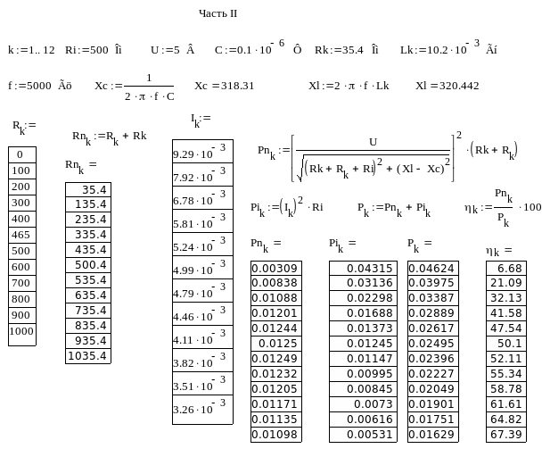 | R | RH=R+RK | I | PH | Pi | P | η |