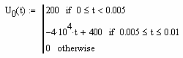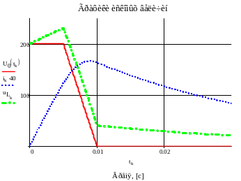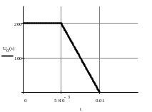 Имеется схема RC – цепи с одним реактивным элементом и источником импульсного напряжения (рис.1.1). Требуется найти в качестве выходной величины на заданном интервале времени ток, указанный на схеме стрелкой. Для этого сначала составляется дифференциальное уравнение, определяющее напряжение на конденсаторе данной схемы. Затем определяется последовательность соответствующих значений искомого напряжения или тока элемента цепи, представляемая таблицей и графиком.