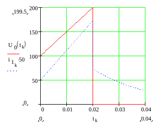 Рис.2.Совмещённый график задающего напряжения и тока на катушке.