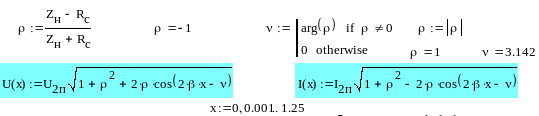 Вывести на экран монитора программу анализа режимов работы линии без потерь (MathCad, Lab_20.mcd). Скопировать файл, копию сохранить под другим именем (Save As).