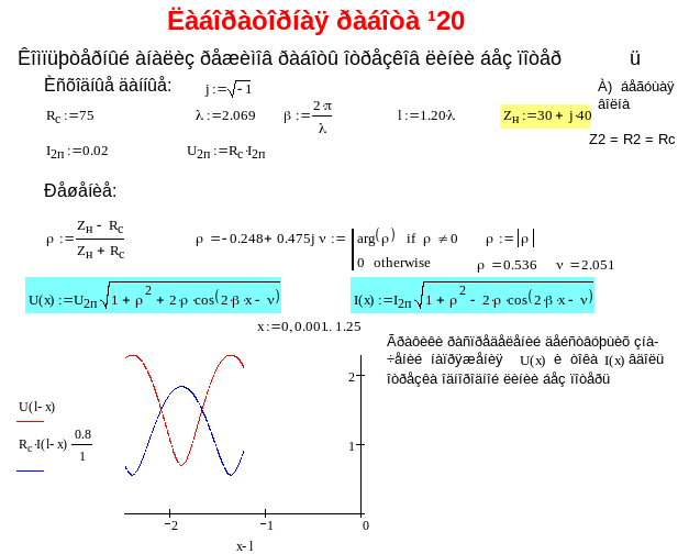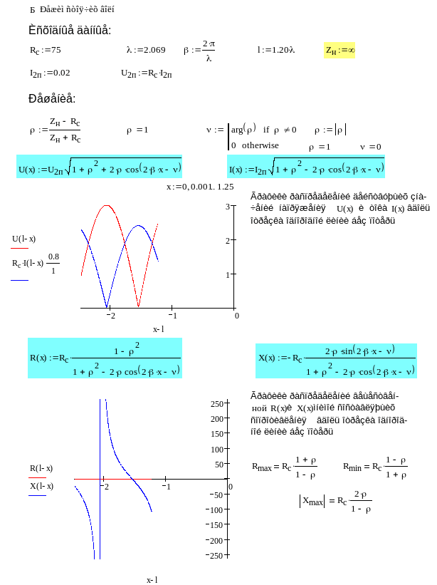 «Компьютерный анализ режимов работы отрезков линии без потерь»