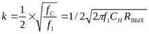 В точке пересечения относительный наклон характеристик K(f) и 1/B(f) не должен превышать 20 дБ/дек.
