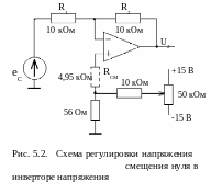 ля уменьшения потенциальной составляющей выходной статической погрешности uВЫХ нужно либо использовать соответствующие выводы ОУ, либо при их отсутствии, осуществлять балансировку схемы по входу (рис. 5.7). Настройка нуля в этой схеме немного снижает его коэффициент усиления.