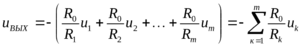 Коэффициенты усиления Kk=-R0/Rk каждого из m входных напряжений не зависят от величины коэффициентов усиления для других входов (от величины суммирующих сопротивлений); не зависят от того, подключены или нет другие входные источники и даже от того, заземлены отключённые входы или же они оставлены открытыми.