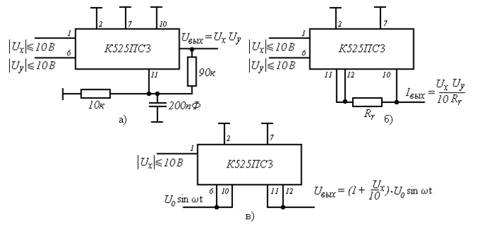 Рис.6.10. Простейшие функциональные схемы на базе перемножителя К525ПС3: