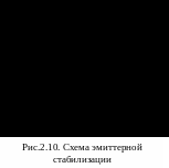 Схема эмиттерной стабилизации (рис.2.10) является самой распространенной схемой. Стабилизация осуществляется за счет последовательной ООС по току, возникающей из-за наличия в схеме резистора