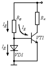В первом случае используются элементы, сопротивления которых зависят от температуры: терморезисторы, полупроводниковые диоды, стабилитроны. Например, на рис.2.7 в качестве такого элемента используется диод. При изменений температуры статическая характеристика диода