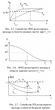 ак уже отмечалось, на область нижних частот и больших времен влияют СР и СЭ (рис. 3.3, б). Для упрощения анализа можно считать что эти конденсаторы влияют на АЧХ и ПХ независимо друг от друга, т.е., изучая влияние одного конденсатора, второй полагаем равный бесконечности (его сопротивление равно нулю). Если конденсаторы вносят небольшие искажения, то это не создает заметной ошибки.