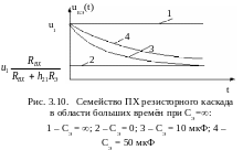 На рис. 3.10 приведены ПХ каскада в области больших времен в предположении, что СР = . При СЭ = и СЭ = 0 ПХ – идеальны. Прямая 2 проходит ниже, т.к. в этом случае