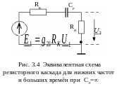 Эквивалентная схема каскада для этого диапазона частот (времен) приведена на рис. 3.3, в.