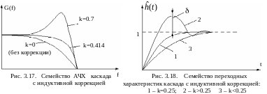 (рис. 3.17). При k=0.414 имеет место максимально плоская АЧХ, максимум образующейся при k>0.414, может быть использован для уменьшения частотных искажений, возникающих в других каскадах, т.е. для осуществления взаимной коррекции. При k=0.414 выигрыш по площади усиления составляет 1.72.