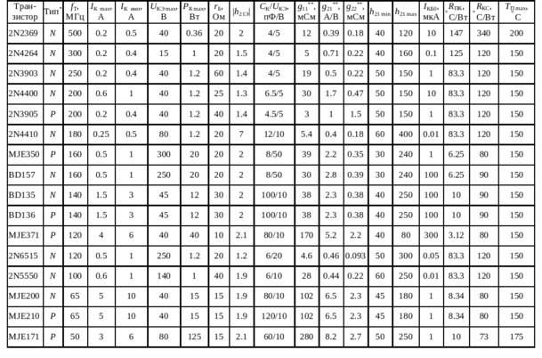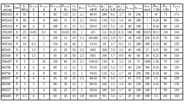 Выбор типа биполярных транзисторов для выходного каскада и каскадов предварительного усиления осуществляется по трем основным параметрам: граничной частоте (