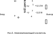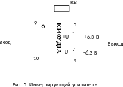 Инвертирующий усилитель реализован на ОУ К140УД1А (рис.5).Сопротивление RB = 100 кОм. Определить вид ОС, которой охвачен ОУ, и рассчитать его входное сопротивление RвхF (между выводами 9-10),если Rc = 5 кОм и без ОС (RB = ∞) Rвх = 20 кОм, Ke = 400.