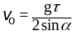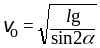 Для расчета начальной скорости тела, брошенного под углом к горизонту, использовано соотношение: