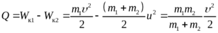 В процессе абсолютно неупругого удара часть механической энергии переходит в тепло, которое определяется разностью кинетической энергии системы до и после удара