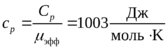 Используя соотношение (3) можно рассчитать удельную теплоемкость газа при постоянном давлении