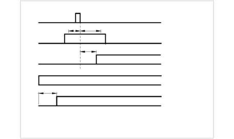 Сигнал на выходе Q D-триггера соответствует сигналу на входе D в момент появления заднего фронта синхроимпульса С и появляется на выходе Q с задержкой в tP1 нс. Сигнал на входе D должен появиться раньше, чем фронт синхроимпульса С на время, превышающее время предустановки tCU. Этот сигнал должен сохранять свое значение на входе D в течение времени, превышающем время удержания tH.