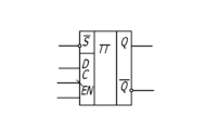 Если сигнал на входе разрешения EN = '1', то сигнал на выходе Q D-триггера соответствует сигналу на входе D в момент появления заднего фронта синхроимпульса С и появляется на выходе Q с задержкой tP1 нс. Сигнал НЕ Q появляется с задержкой tP1 нс. Сигнал на входе D должен появиться раньше, чем фронт синхроимпульса С на время, превышающее время предустановки tCU. Этот сигнал должен сохранять свое значение на входе D в течение времени, превышающем время удержания tH.