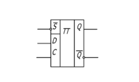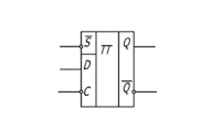 Сигнал на выходе Q D-триггера соответствует сигналу на входе D в то время, пока разрешающий синхросигнал С = '1' и появляется на выходе Q с задержкой tP1 нс. Сигнал НЕ Q появляется с задержкой tP1 нс. Сигнал на входе D должен появиться раньше, чем передний фронт синхроимпульса С. Сигнал D не должен меняться в районе заднего фронта синхроимпульса С в течение времени, превышающем суммарное время предустановки tCU и удержания tH.