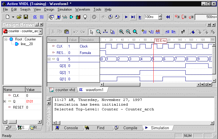 Value – задает постоянное значение для выбранного сигнала. Значения можно задавать в виде последовательности символов (1011) или двоичных (2#1011), десятичных (10#11) или шестнадцатеричных (16#B) чисел.