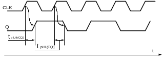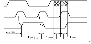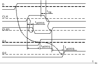 Интервал времени, предшествующий срезу сигнала CLK (tПД), является опасным. В это время сигнал на входе D не должен изменяться.