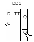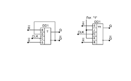 Первый триггер DD1 является ведущим (Master). Он изменяет свое состояние в соответствии с входным сигналом D в то время, когда сигнал СLK равен 1. В это время инвертор DD2 подает на вход синхронизации второго ведомого (Slave) триггера DD3 сигнал СLK1, равный 0. Поэтому триггер DD3 закрыт и сохраняет свое предшествующее состояние.