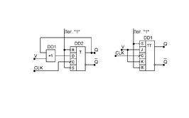 Рис. 4.11. Схема счетного триггера на основе стандартных триггеров