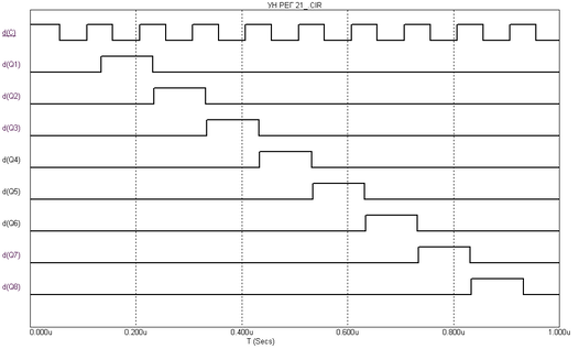 Рис. 4.9. Временная диаграмма работы шестиэлементного D-триггера
