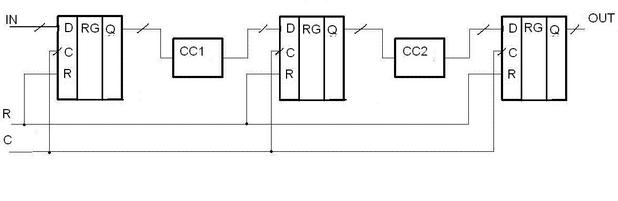 2)Этот синхросигнал(С-clock) без задержек, т.е. одновременно, должен поступать на все запоминающие элементы схемы.