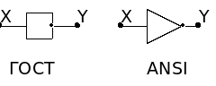 Логический элемент НЕ инвертирует поступающий на вход сигнал Х, другими словами, заменяет сигнал X на сигнал