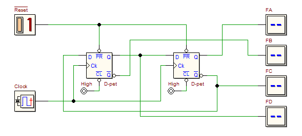 Реализуйте следующую модель схемы счетчика Джонсона по модулю 4