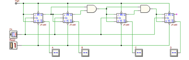 1.Определите минимальный период синхроимпульсов в этой схеме и сравните с данными,полученными при исследовании счетчика Джонсона.